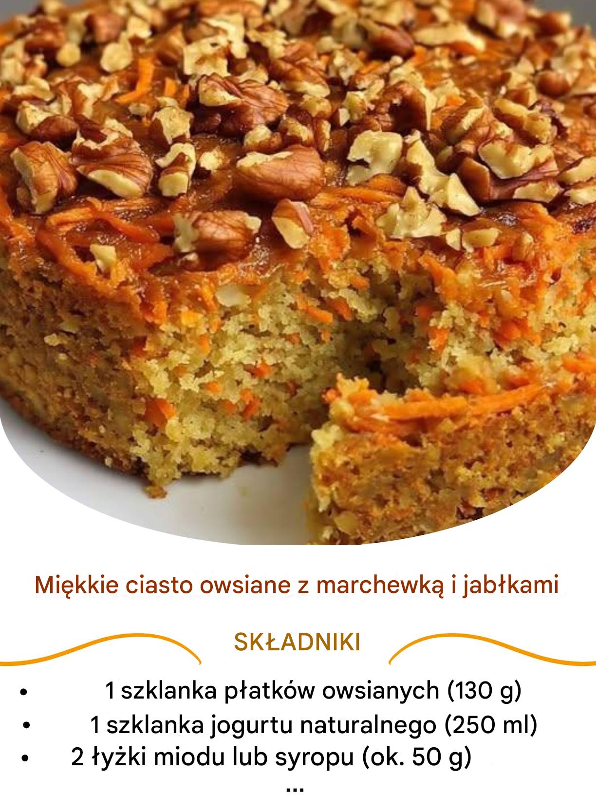 Wilgotne ciasto marchewkowo-jabłkowe z płatkami owsianymi