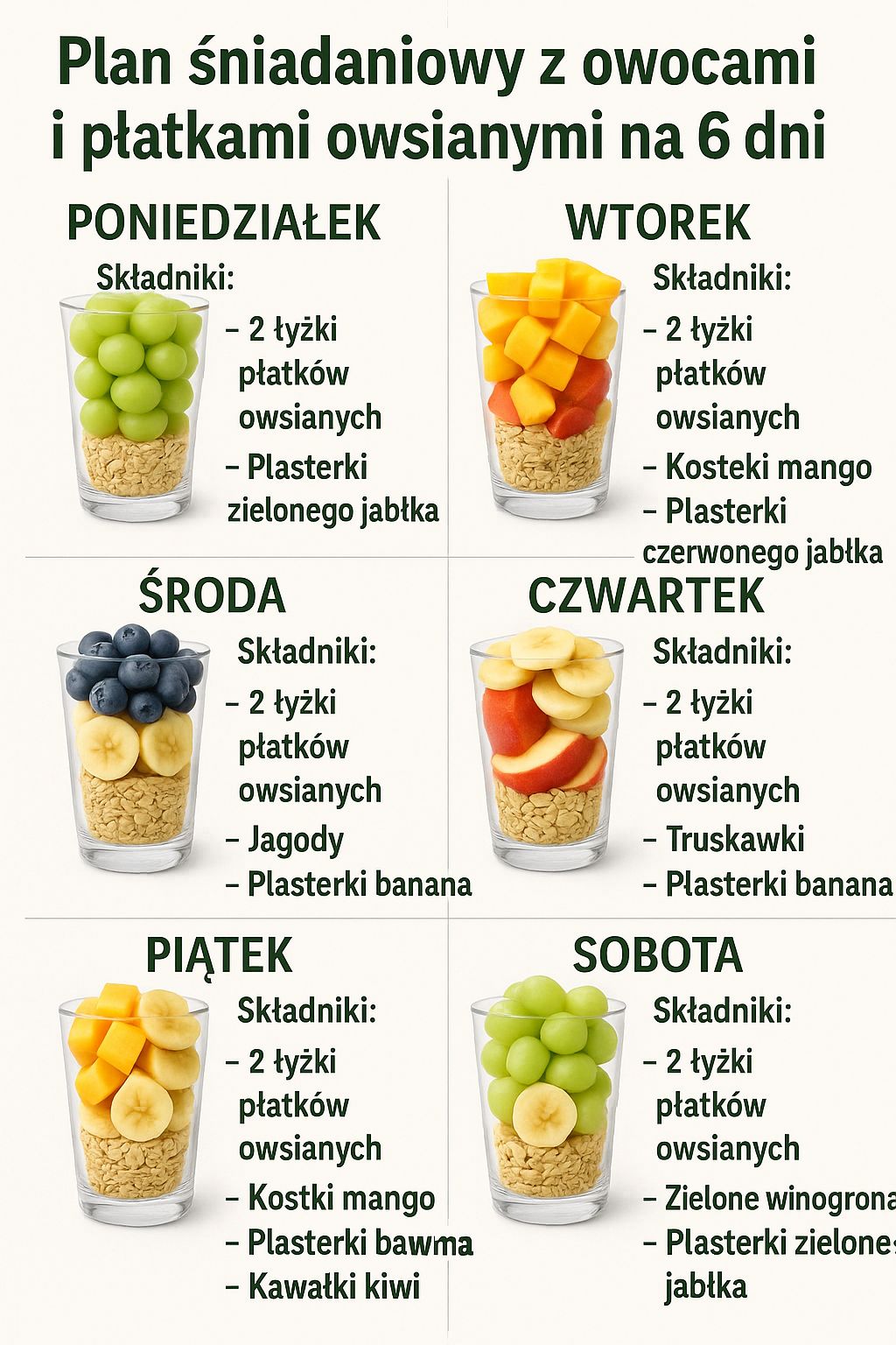 Poniedziałek – Owsianka z zielonym jabłkiem, winogronami i bananem
